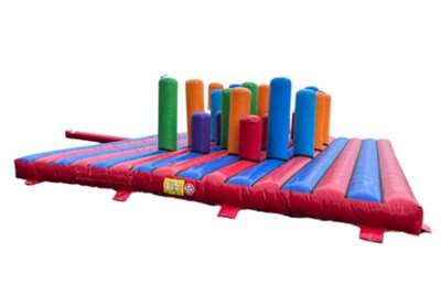 Stor flad hoppepude på 8×8 meter med hele 49 stk. biff’n’bash. Forlystelsen fungerer både som hoppepude, men er også ideel til fangelege og konkurrencer.